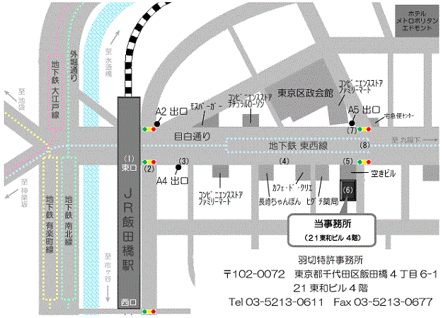 羽切特許事務所があるビルを右に出て、突き当りを左に少し進むと右手に石階段が現れます。階段を登り右に進むと、東京のお伊勢様として有名な「東京大神宮」があります。特に縁結びにご利益があるとのことです。