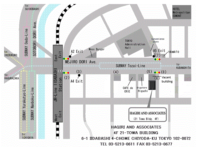 From East Exit of JR Iidabashi Station and from Exit A4 of Tokyo Metro